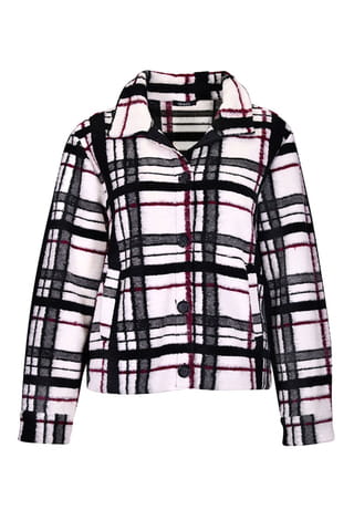 Bluza Kenny S - biała w kratę  - czarno śliwkowa ,rozpinana, ciepła , milutka bluza , zapinana na guziki