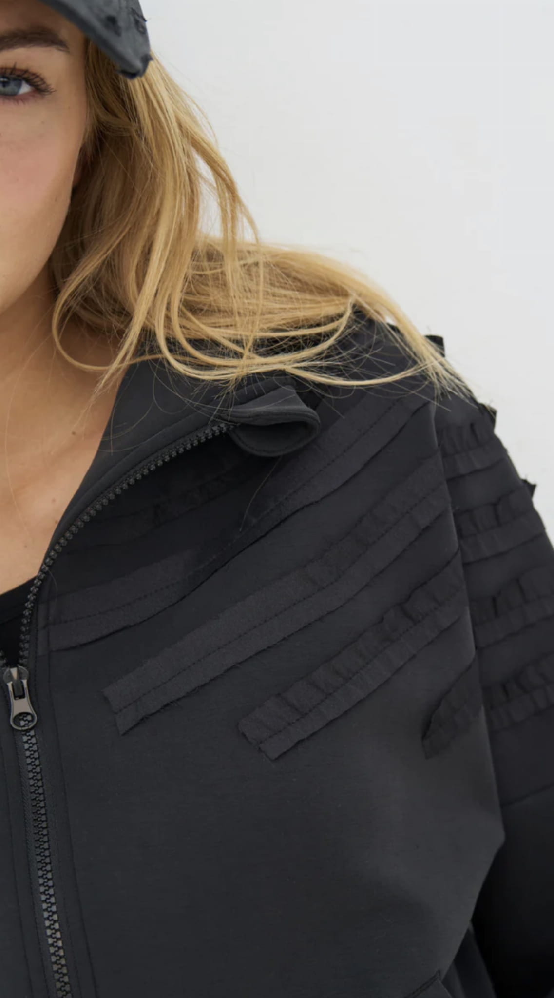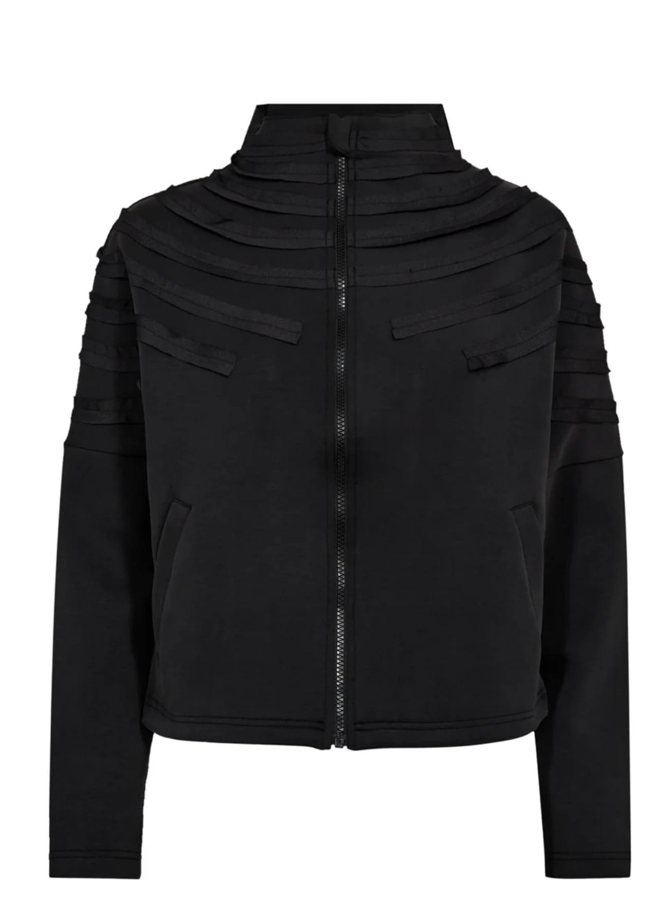 Bluza NU Denmark, świetna czarna rozpinana bluza od dresu , bez kaptura, zapinana na suwak, dół prosty, rękaw kimonowy, długość do bioder, wpuszczane kieszonki z przodu bo bokach, dekoracyjne przeszycia w górnej części bluzy, miękki pracujący materiał .