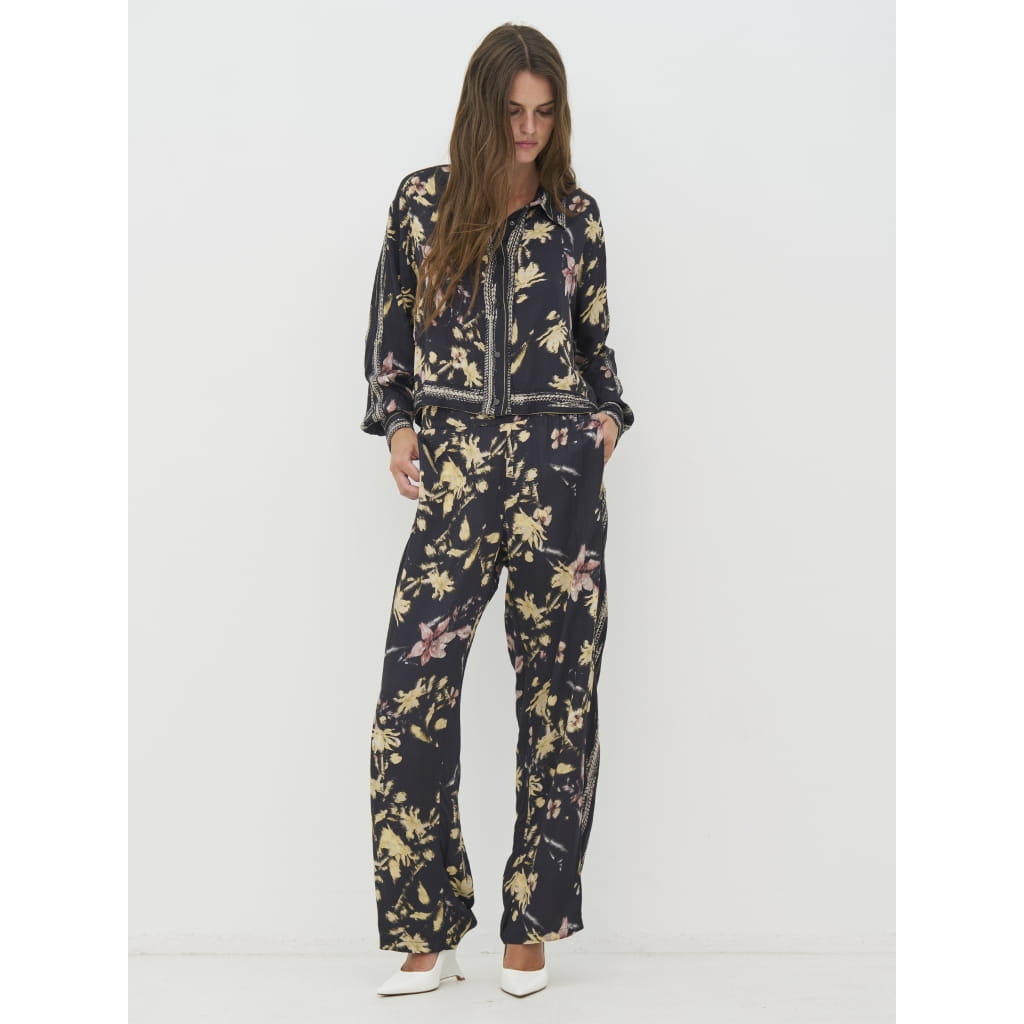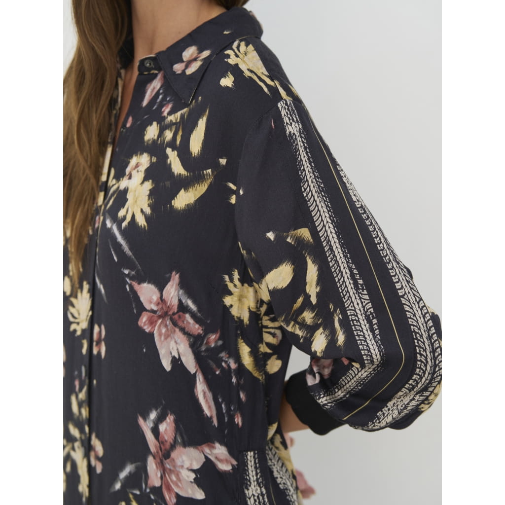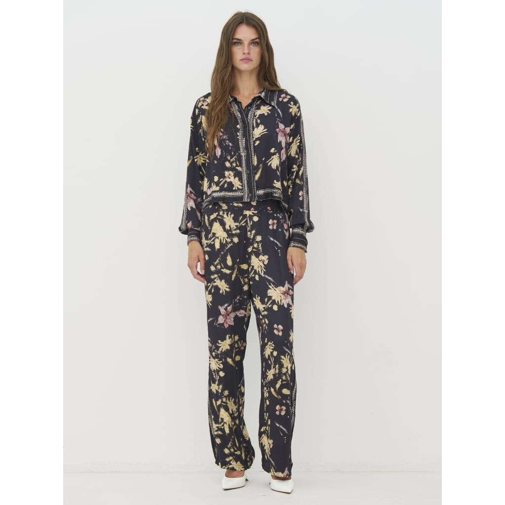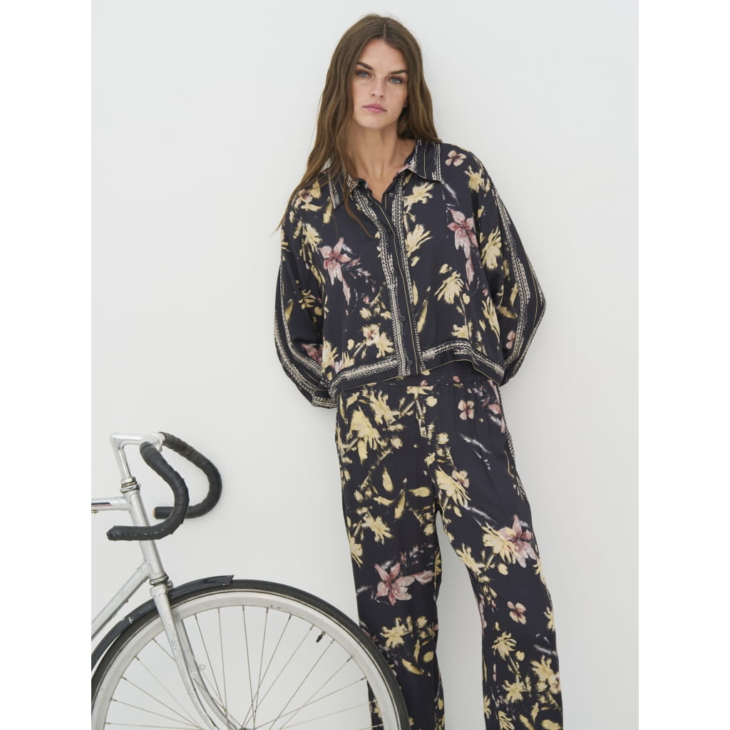 Bluzka NU Denmark - krótka luźna koszula z certyfikowanej wiskozy ECOVERO, fason luźny , do kompletu to prostych luźnych spodni z tej samej tkaniny, rękaw długi prosty, delikatny kołnierzyk,
