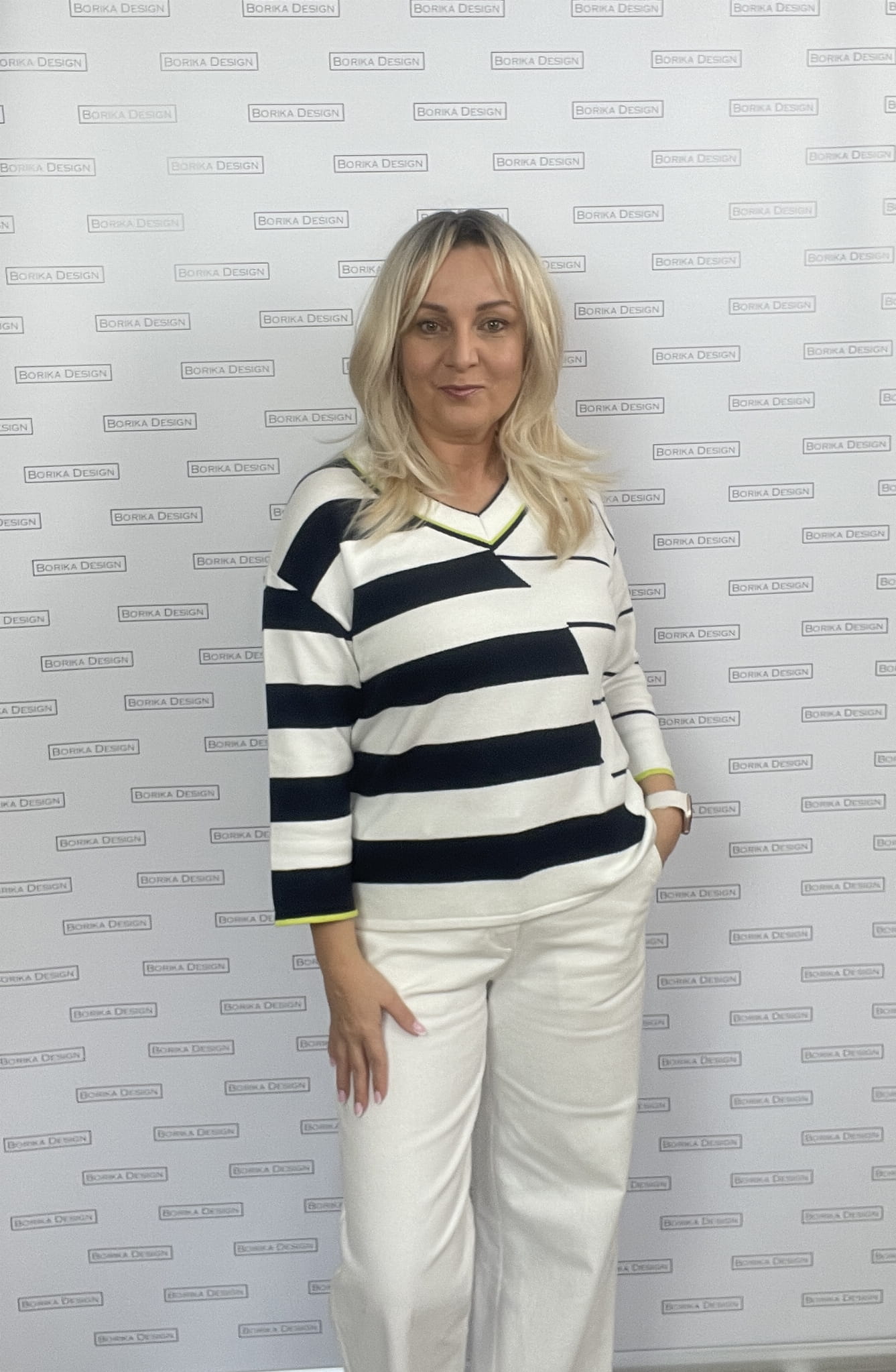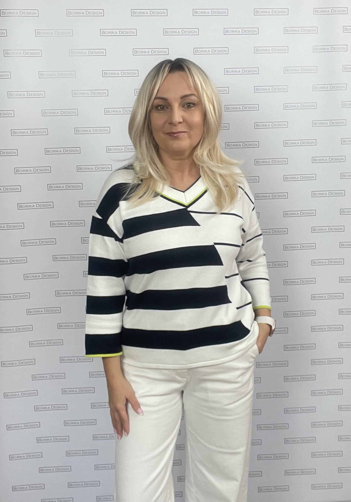 Sweter w paski Kenny S - świetny sweterek w czarno białe pasy, dekolt V, rękaw 3/4, dół prosty, idealny do wszystkich czarnych i białych spodni,