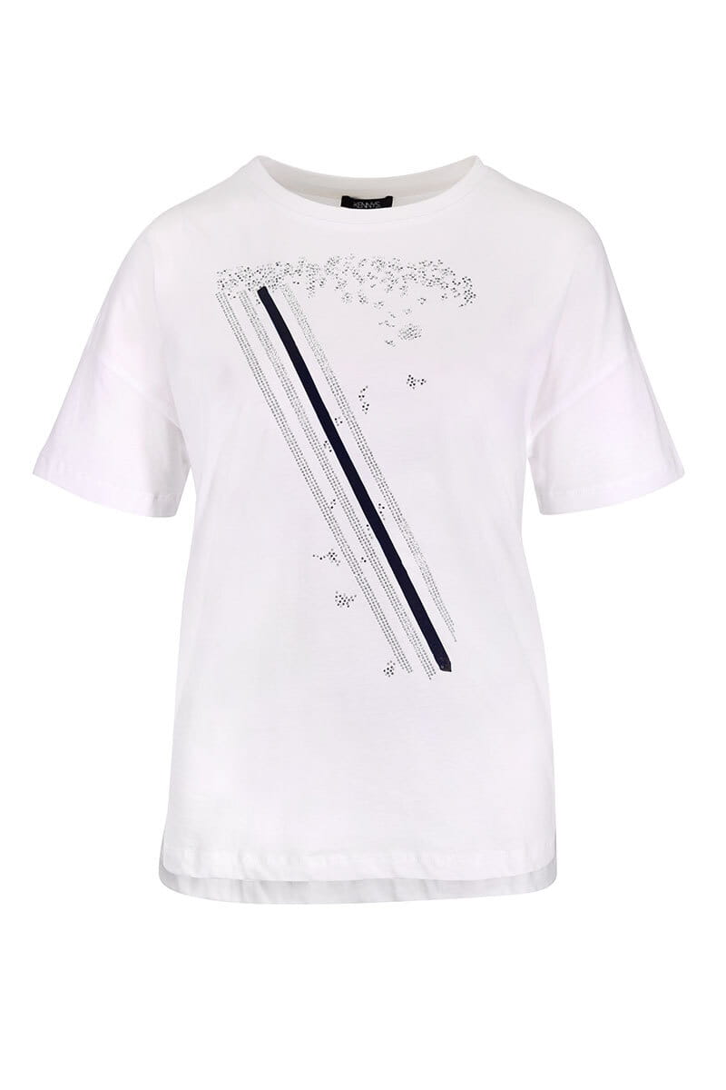 T-shirt Kenny S biały - biały klasyczny T-shirt z delikatną ozdobą z małych srebrnych cekinów